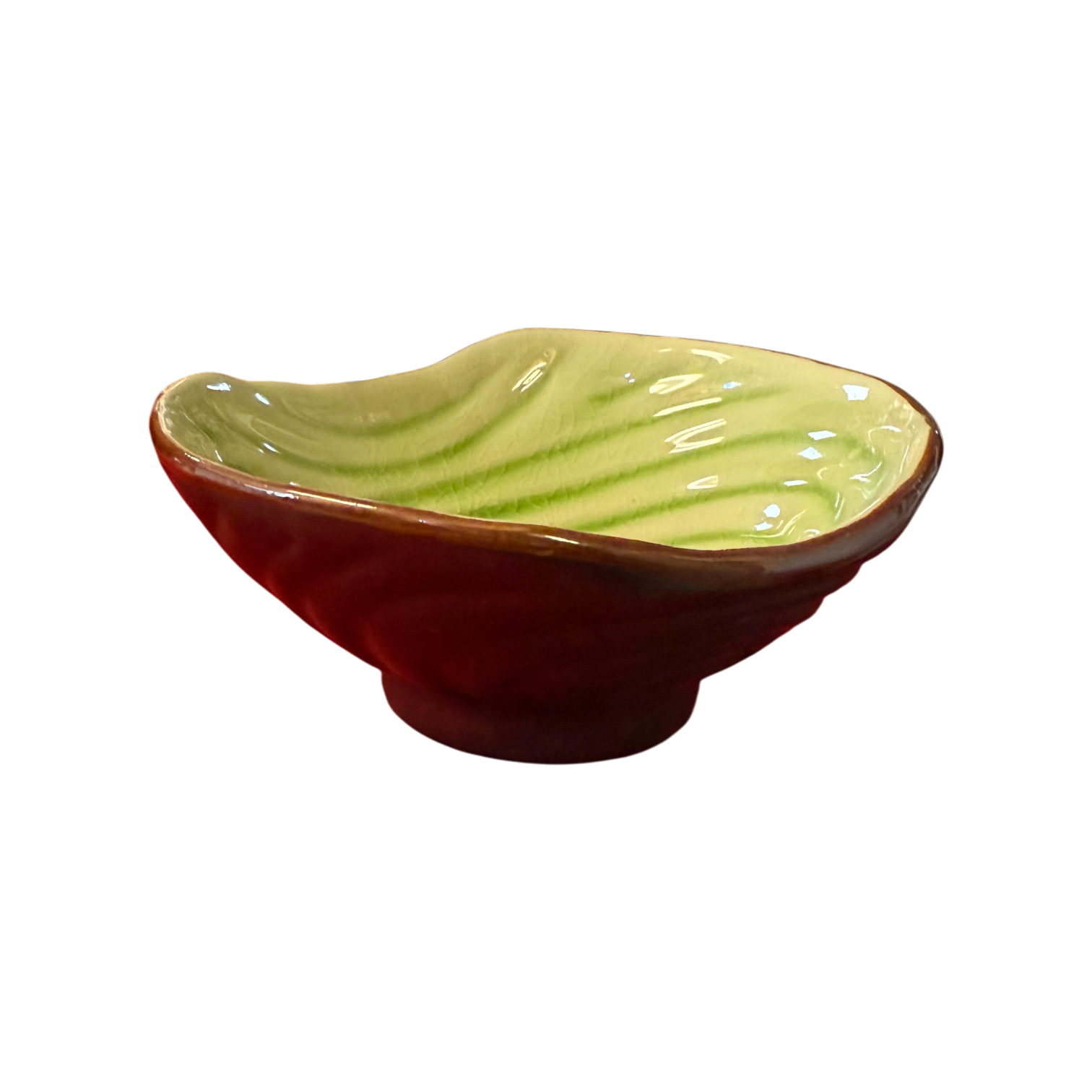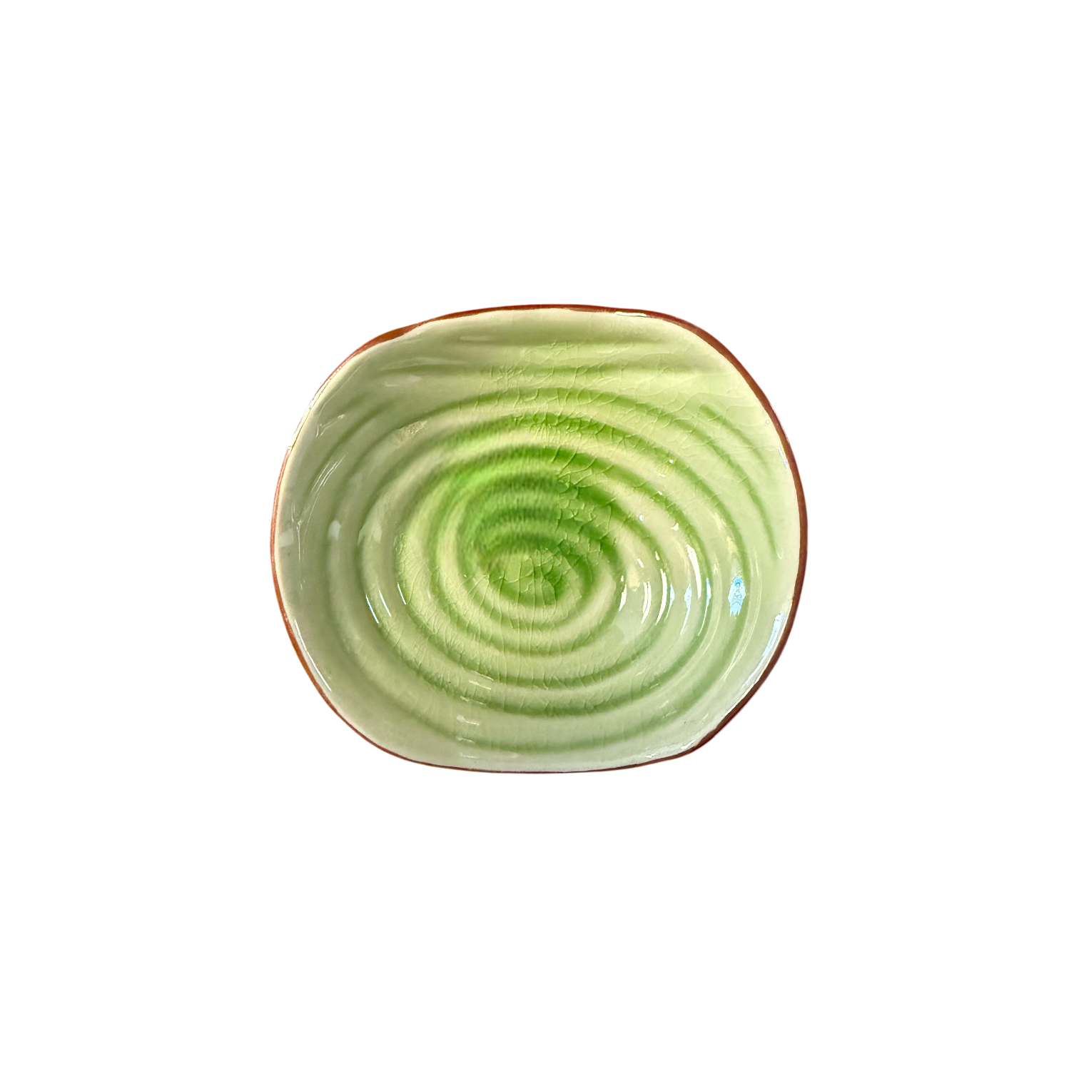 Ceramic Wavy Green Dipping Bowl | Artisan Sauce Ramekin 13cm
